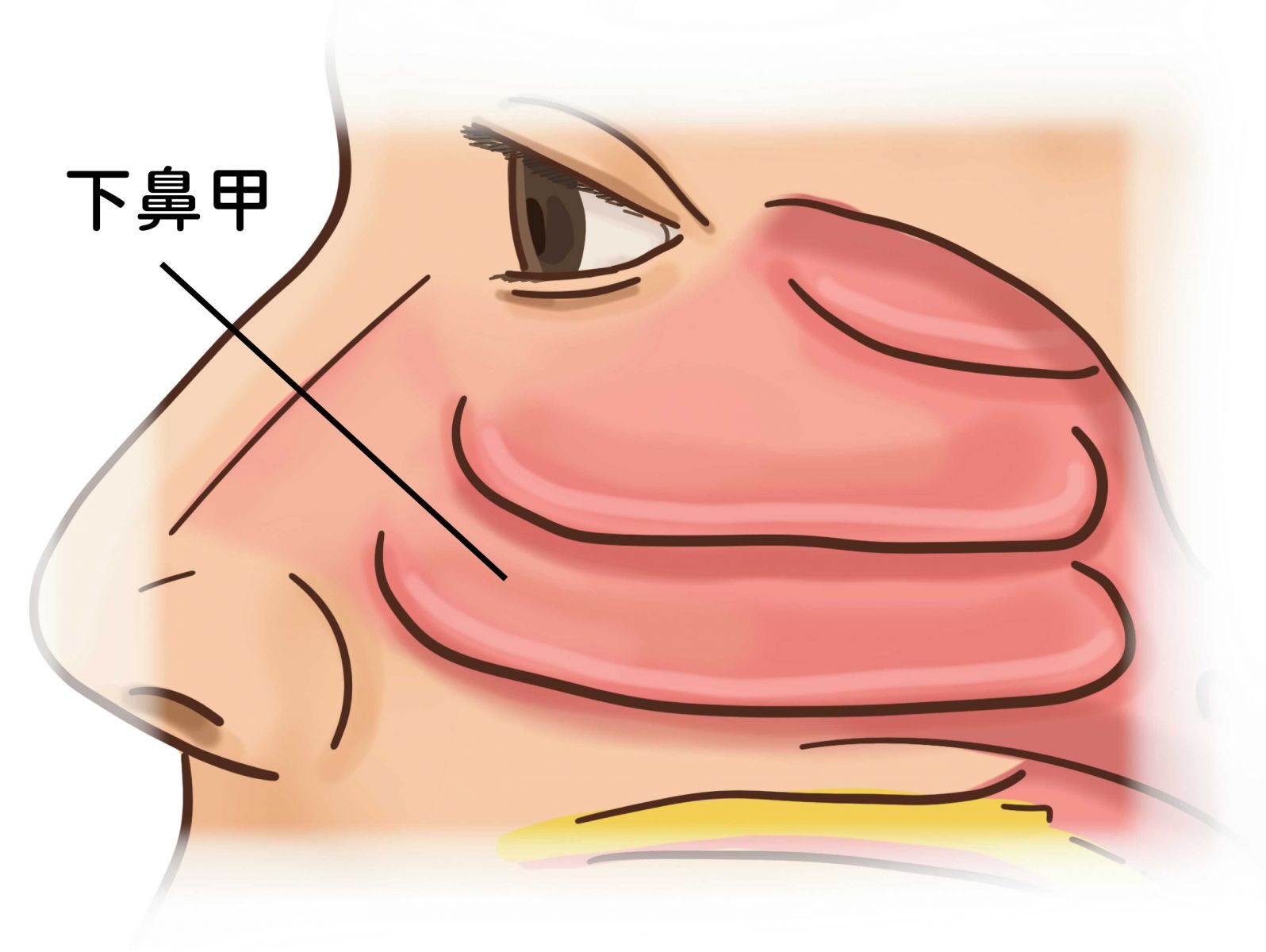 鼻甲在鼻腔內主要分為上鼻甲, 中鼻甲與下鼻甲, 其中與鼻子順暢度最有相關的就是體積最大的下鼻甲了,由於鼻黏膜具有過濾空氣,濕潤空氣等等的功能,所以體積佔最大的下鼻甲其正常的過濾與濕潤空氣功能就更加不能夠忽視。