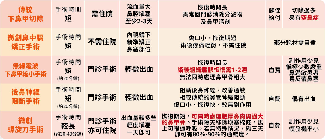 現在我都會建議,如果需要接受下鼻甲手術,可以根據醫師建議,接受微創射頻下鼻甲消融手術,或是下鼻甲微創螺旋刀手術。