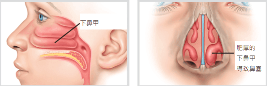 台灣有不少長期為鼻塞所困擾,鼻塞的原因很多,其中最常見的就是長期過敏性炎所引起的慢性肥厚性鼻炎。慢性肥厚性鼻炎病⼈的下鼻甲因長期發炎而產⽣過度肥大的現象,肥大的下鼻甲阻塞了鼻腔內的空氣流通,引起鼻塞的症狀。