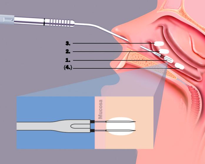 原理跟電波拉皮一樣,利用電腦晶片控制的金屬探針伸入肥厚的下鼻甲內,利用電腦控制溫度,在不破壞黏膜的溫度下,逐漸加溫下鼻甲肥厚組織,來達到縮小下鼻甲體積與保留黏膜的功能。
