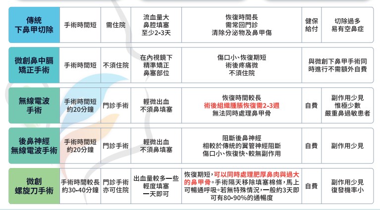 現在我都會建議,如果需要接受下鼻甲手術,可以根據醫師建議,接受微創射頻下鼻甲消融手術,或是下鼻甲微創螺旋刀手術。