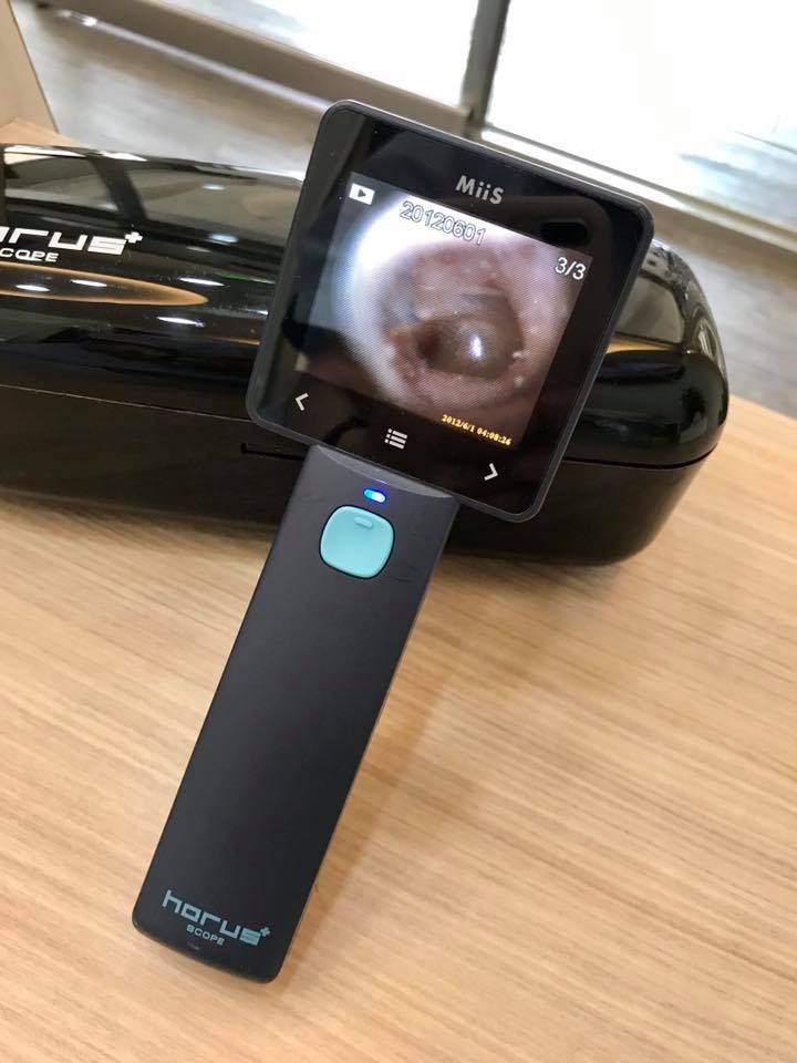 它就像放大鏡和照相機的結合,可以更清楚的觀察外耳道及耳膜的情況,除了可以記錄並且追蹤病人耳朵的狀況, 也可以更清楚的解釋耳朵的構造與病變給大家知道喔!
