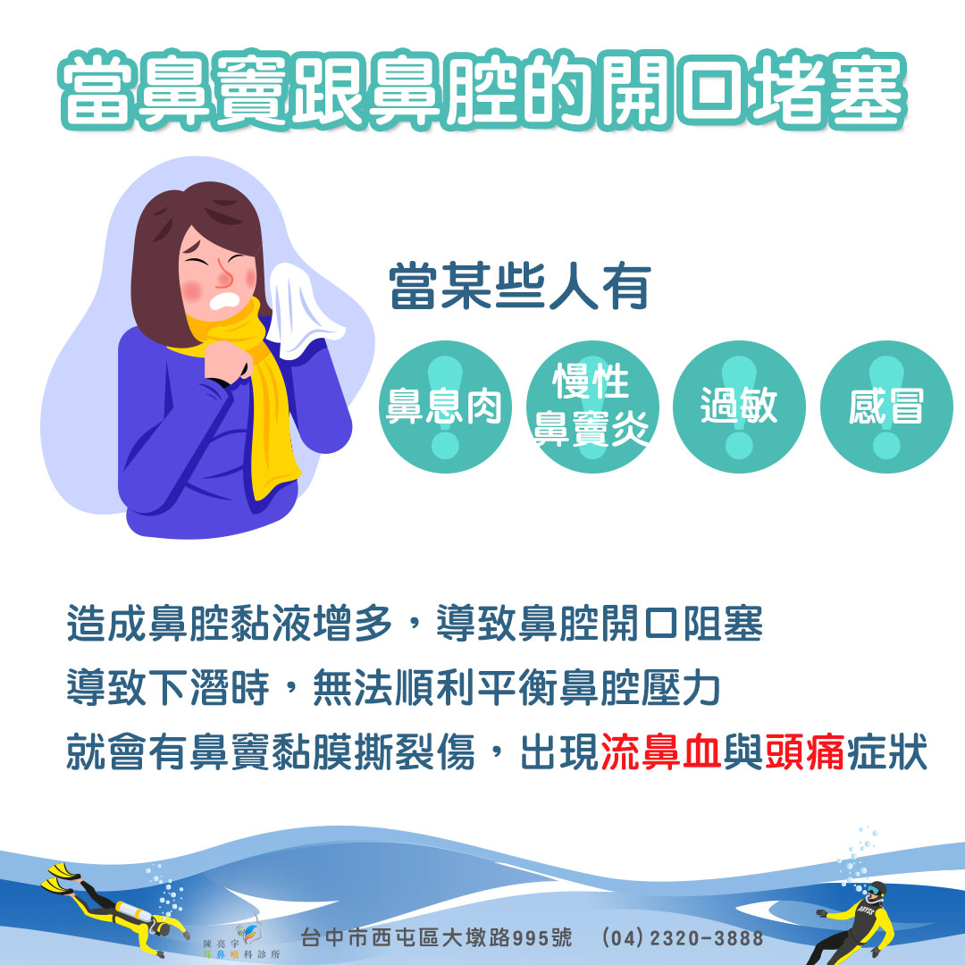 為什麼感冒鼻塞時,潛水就流鼻血﹑頭痛?