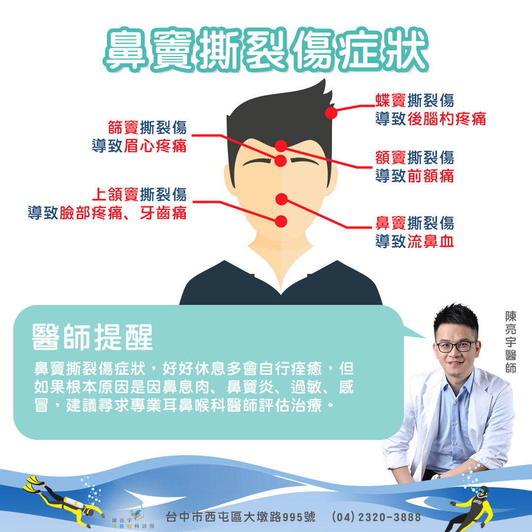 • 當鼻竇與鼻腔阻塞,會產生哪些撕裂傷症狀