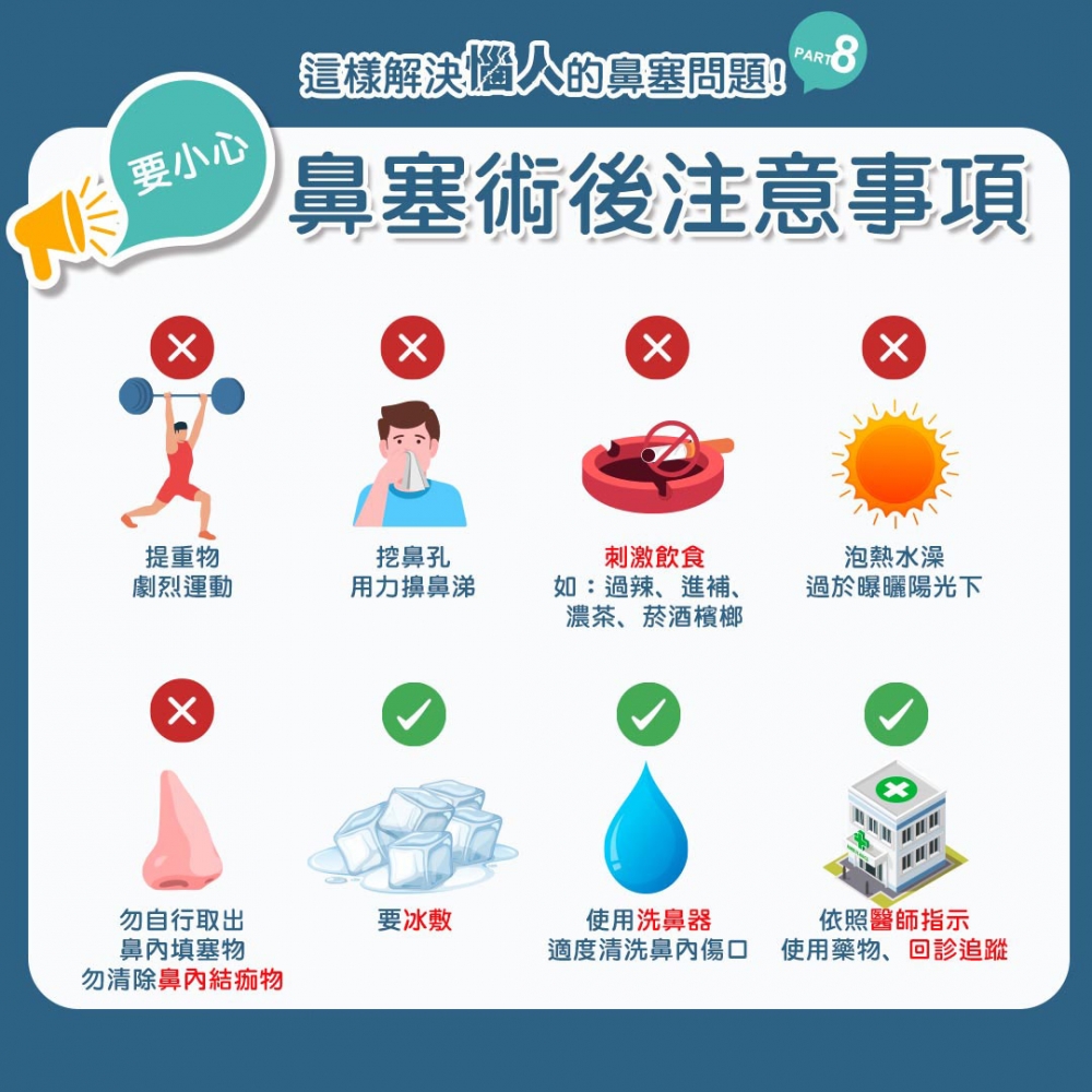 以下注意事項提醒,幫助術後恢復得又快又好 ❌ 不要做的事: 提重物或劇烈運動 挖鼻孔或用力擤鼻涕 刺激飲食(如:過辣、進補、濃茶、菸酒檳榔) Date:2025/02/10