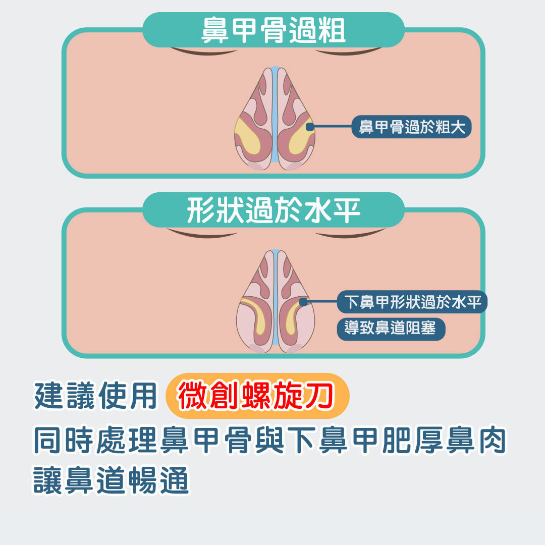 .【鼻甲骨過粗】﹑【鼻甲骨形狀過於水平】
