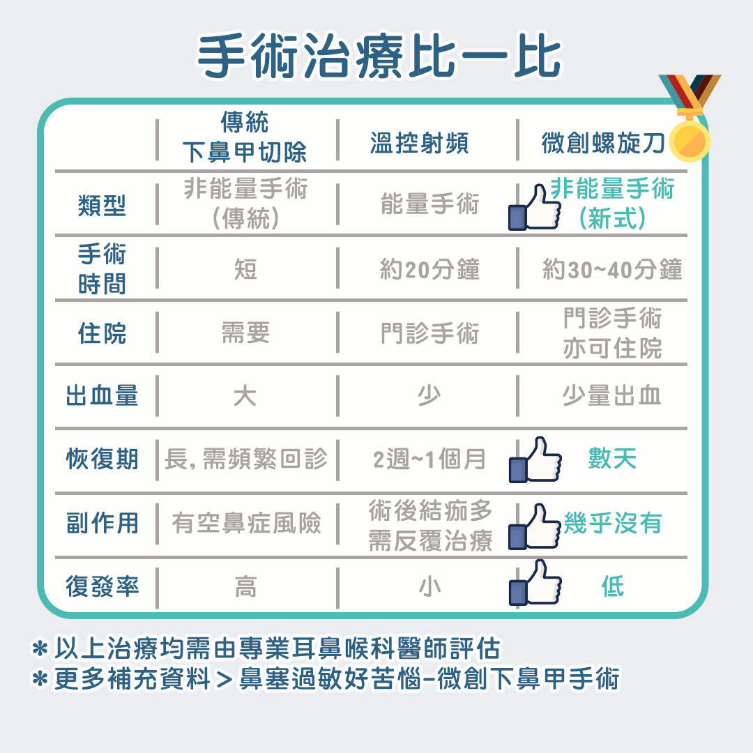 ❙ 不同下鼻甲肥大類型適合的治療方式都不同,建議應由專業耳鼻喉科醫師做進一步評估診斷!